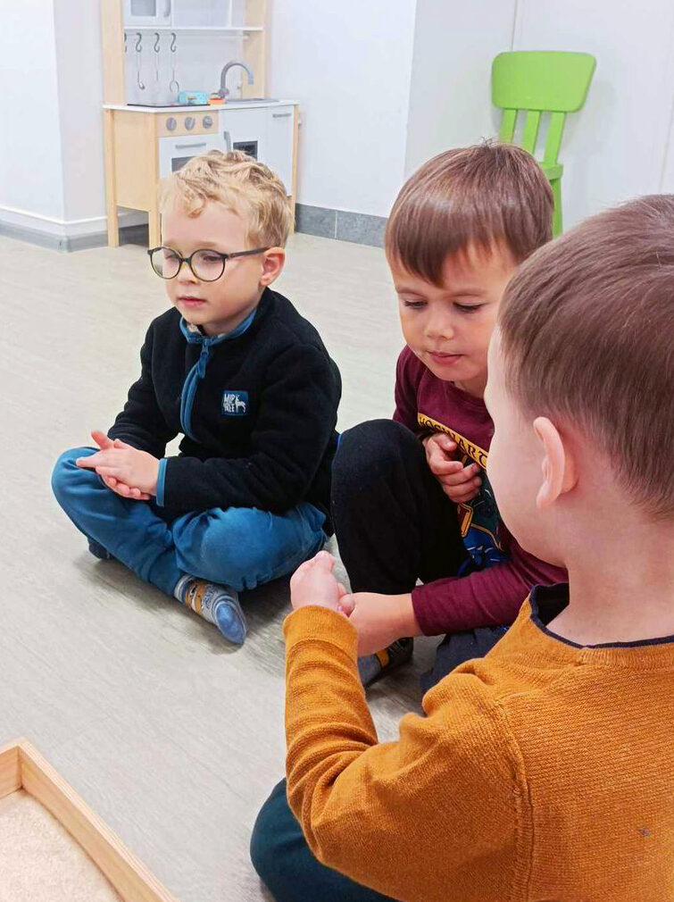 Nie stawiamy sztywnych ram, bo doskonale wiemy, że każde dziecko rozwija się we własnym, indywidualnym tempie. Jesteśmy po to, aby towarzyszyć i wspierać malucha nie tylko w dobrych, ale i w trudnych dla niego chwilach. Nie uznajemy kar i nagród – staramy się najadekwatniej odczytywać i reagować na potrzeby dziecka poprzez rozmowę, obserwację i towarzyszenie.